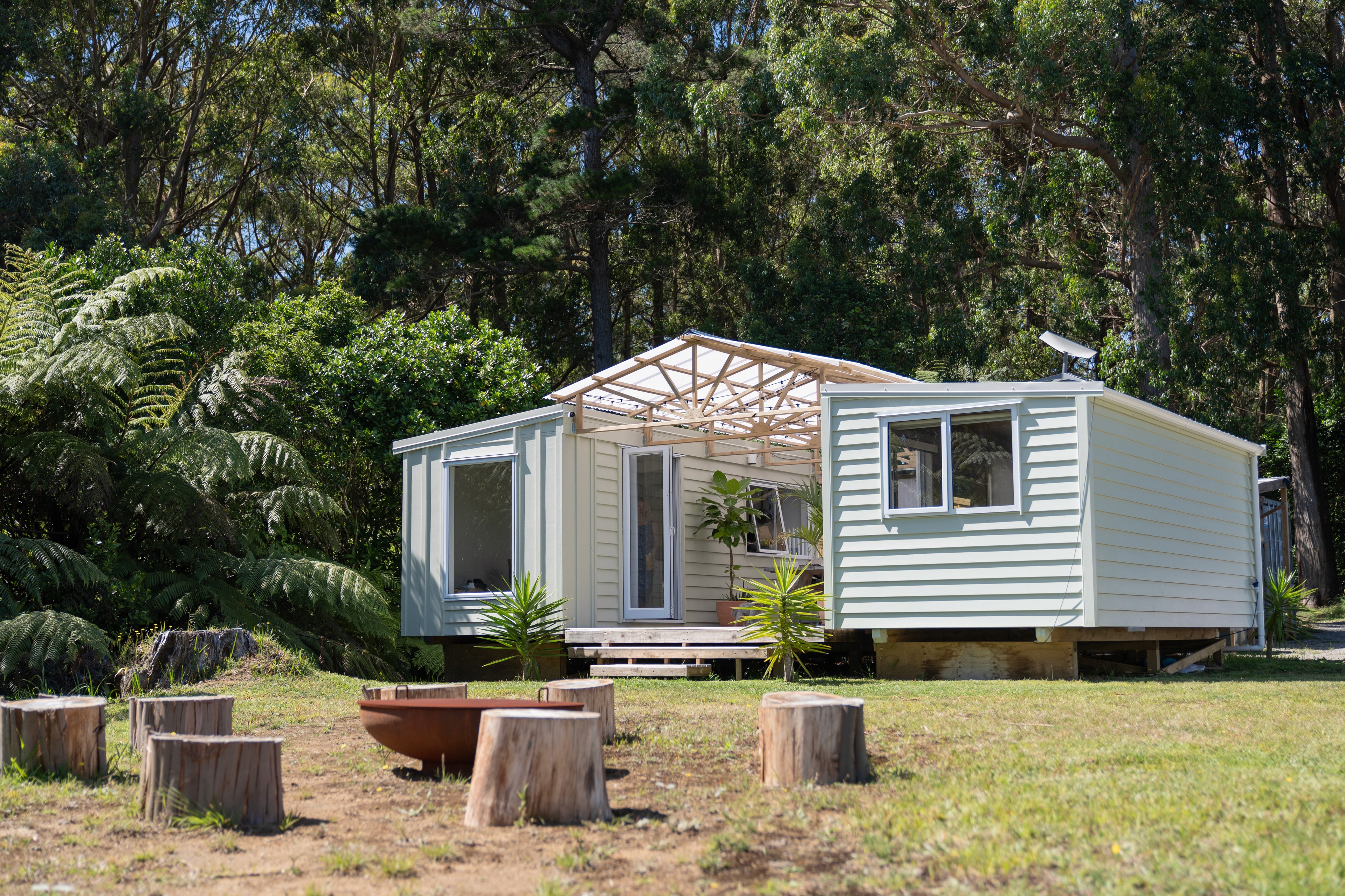 We weren’t ready to move back to New Zealand full-time, but we wanted to start preparing for it. So we bought a piece of land back home and began experimenting with small living — first by renovating a retro caravan, then by building something a little more permanent.